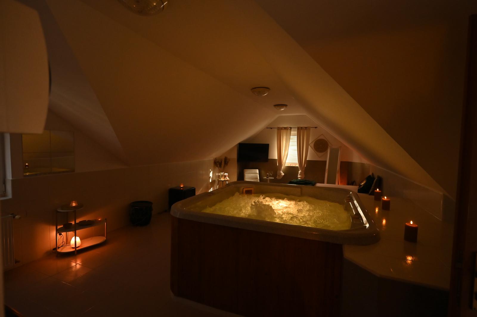 Soukromá vířivka pro dokonalé uvolnění. Teplá voda a masážní trysky prokrví svaly a zklidní hlavu.